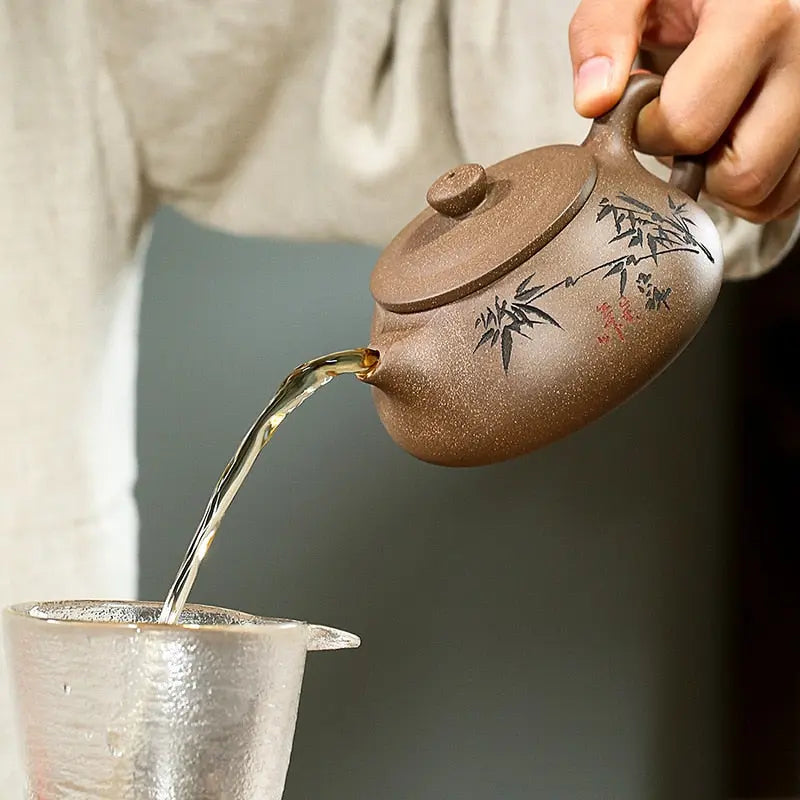 Plonge dans l'univers authentique de la tradition chinoise avec notre Théière Chinoise Yixing. Son design marron et son motif bambou délicat en argile en font un véritable joyau pour les amateurs de thé.