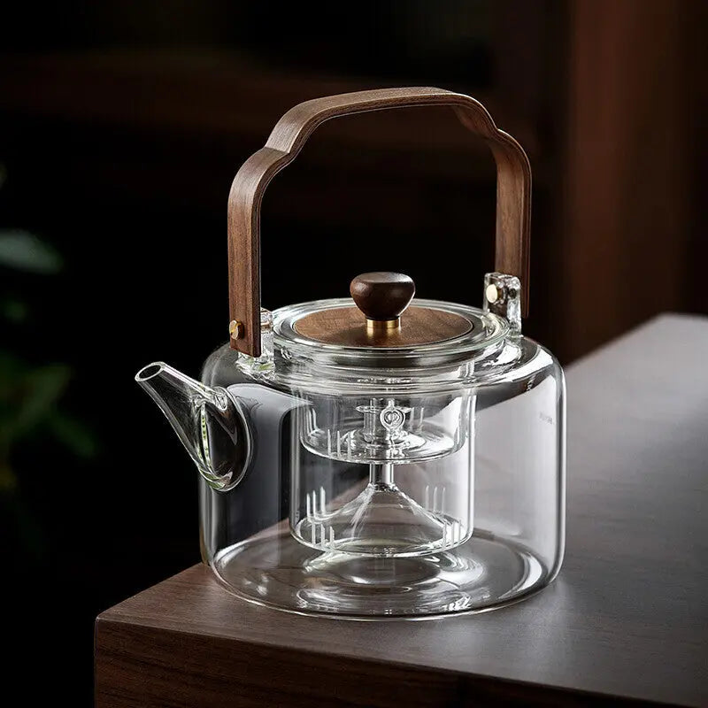 Plonge dans l'univers envoûtant du thé avec cette Théière en Verre Chinoise Premium. Sa capacité de 1.3L en fait l'alliée parfaite de tes moments de partage entre amis ou en famille. L'association subtile du verre borosilicate et du bois confère à cette théière un design à la fois naturel et sophistiqué.