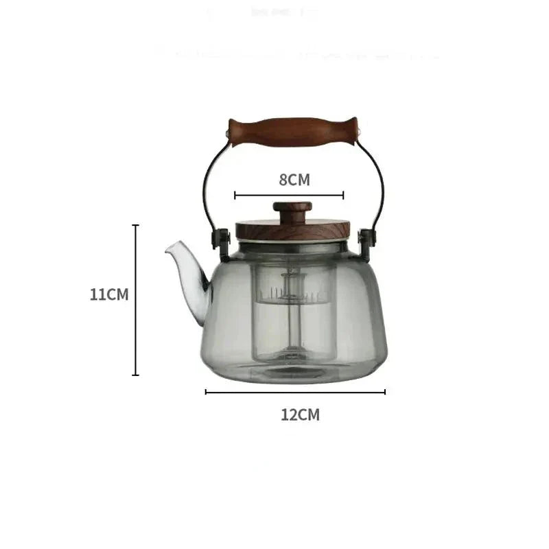 Une théière en verre et bois grise transparente de 900ml, parfaite pour des moments de détente et de dégustation.