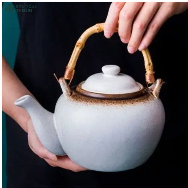Offre-toi l'excellence avec la Théière Japonaise en Céramique Blanche Bambou 500ML. Laisse-toi séduire par son charme authentique et savoure des instants de détente uniques. C'est le moment de sublimer ta dégustation de thé ! ☕✨