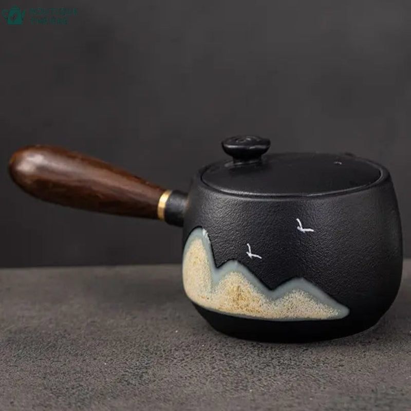 Plonge-toi dans une expérience sensorielle unique avec notre Théière Japonaise Kyusu en Céramique Noire de 320ml. Savoure ton thé préféré dans un écrin de sérénité et d'élégance, grâce à sa poignée latérale en bois offrant une prise en main confortable. Laisse-toi envoûter par son design traditionnel japonais, sublimé par un motif de montagnes qui évoque la quiétude des paysages nippons.