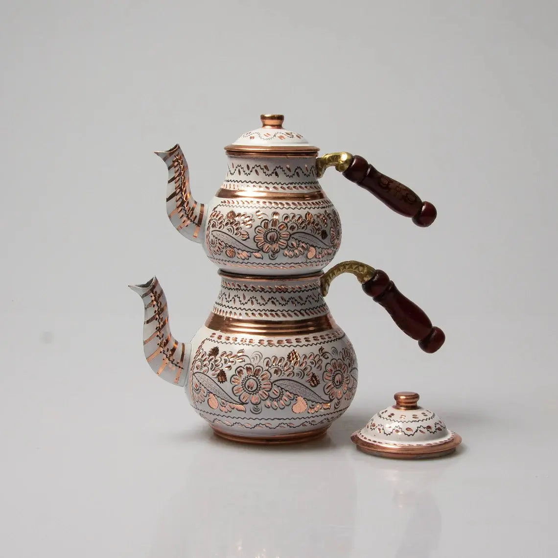 Théière Turque Blanche Double Étage en Cuivre